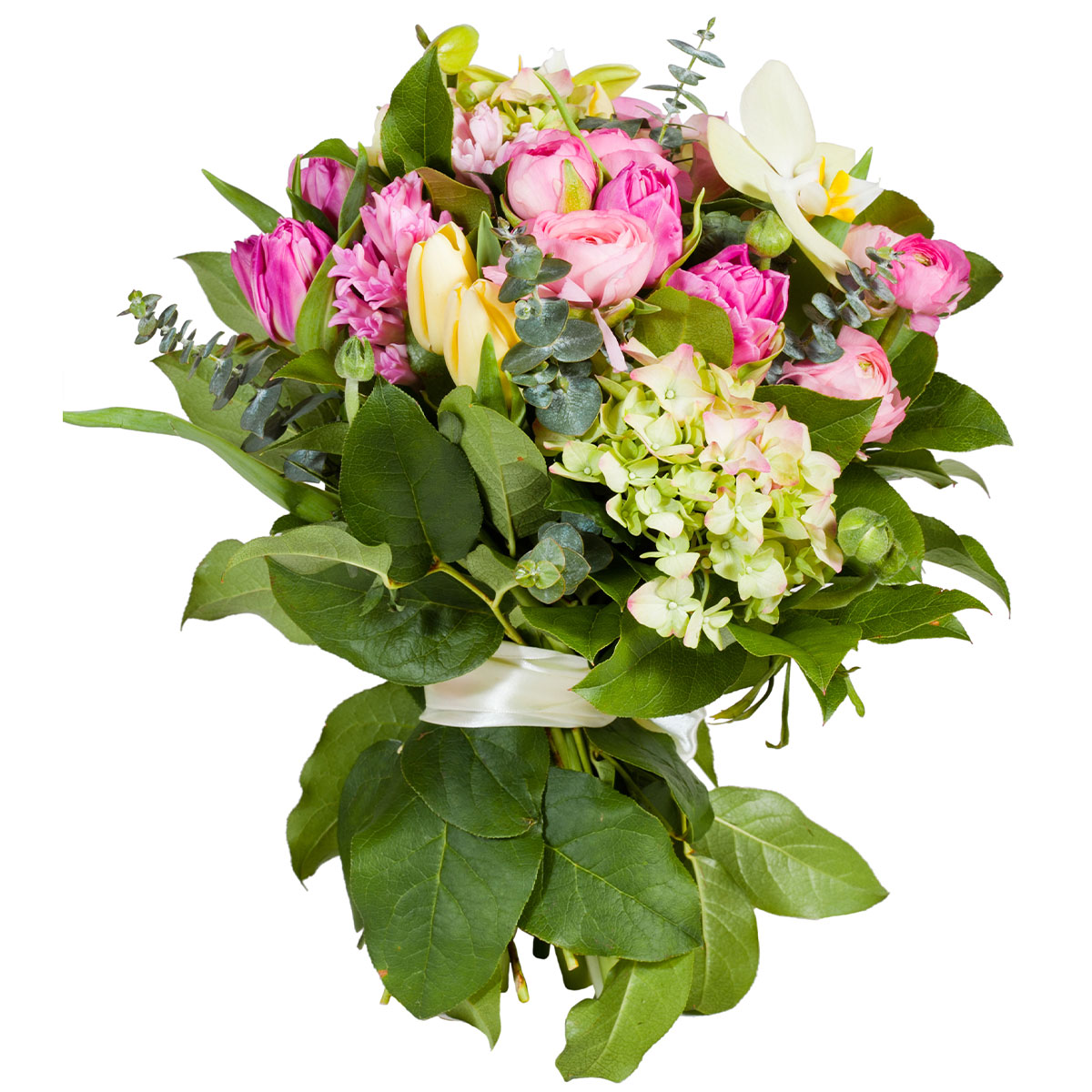 | Состав | Гортензии, Кустовые розы, Розы, Тюльпаны |
