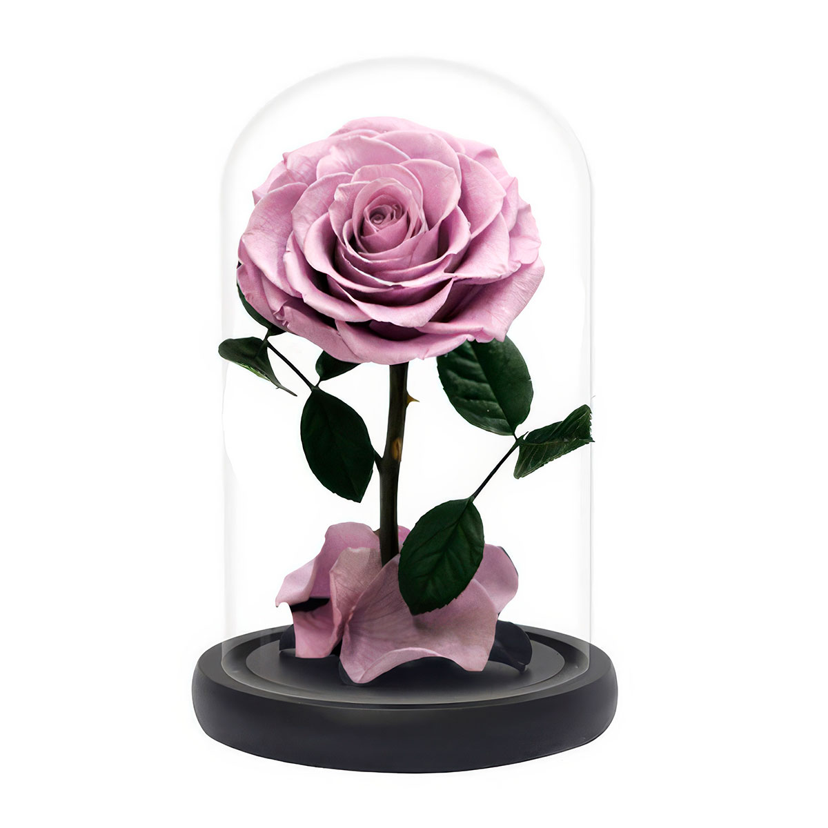 Стабилизированная вечная роза в колбе пурпурная.