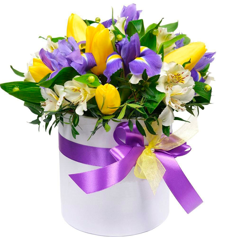 | Состав | Альстромерии, Ирисы, Тюльпаны |