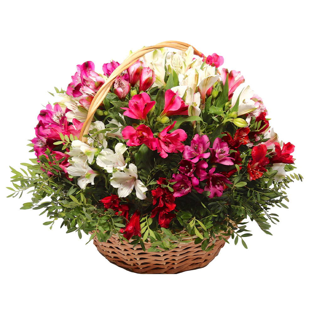 Цветы в корзинке «Краски альстромерий» с доставкой по г Алейск: вы можете заказать букет в салоне цветов «Флормания» по цене от 3790 руб.