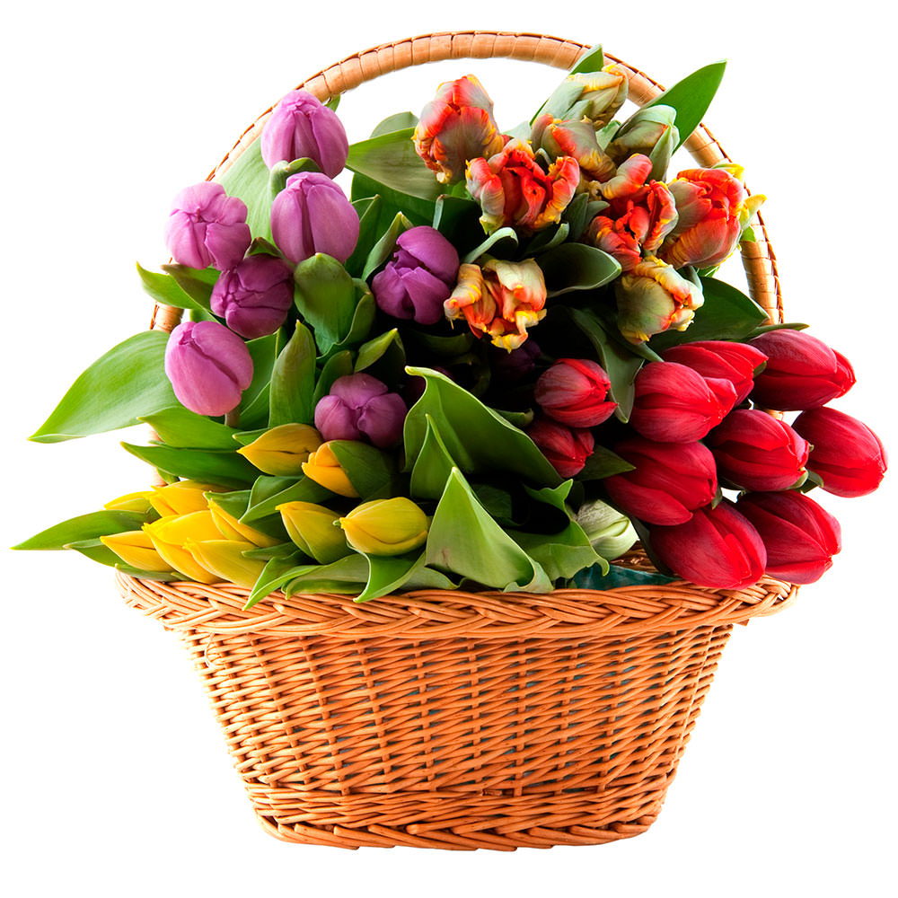 Цветы в корзинке «Микс тюльпанов» с доставкой по г Алейск: вы можете заказать букет в цветочном салоне «Флормания» по цене от 3790 руб.