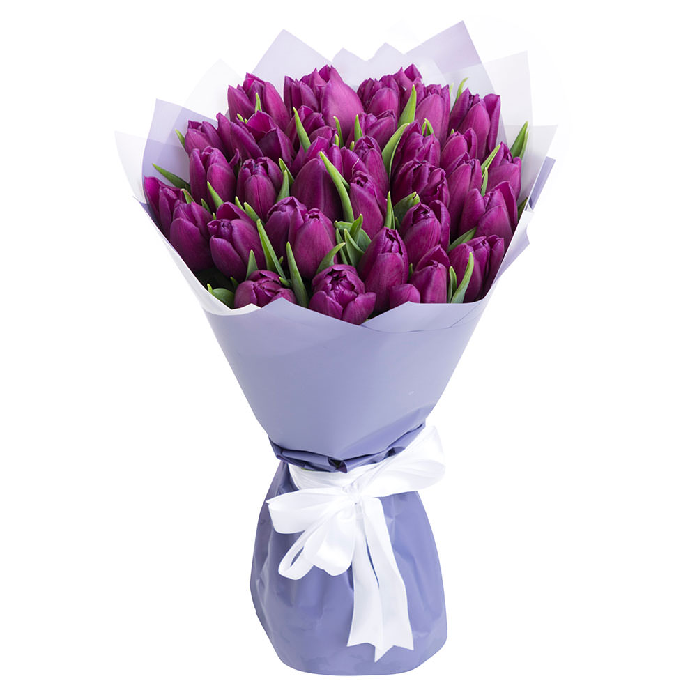 Тюльпаны фиолетовые с доставкой по г Алейск: вы можете купить букет в цветочном интернет-магазине «Флормания» по цене за 180 руб.